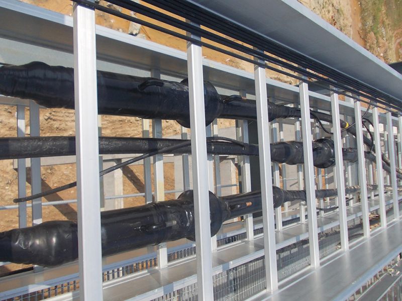 終端應力錐采用三元乙丙橡膠(EPDM)高壓注橡成型,由彈簧錐托頂緊于環(huán)氧套管內(nèi)錐形壁上,克服了應力錐由于材料老化帶來的彈性松弛、應力錐與電纜外半導電層接觸不良等弊病,以確保終端長期安全穩(wěn)定運行;終端為全干式結(jié)構(gòu),杜絕了泄露問題;產(chǎn)品結(jié)構(gòu)緊湊、重量輕、體積小、大大減少了安裝空間;終端與電纜的連接方式為插拔式,安裝簡便,易于維護;插板式GIS終端還適用于電力電纜與變壓器的連接,取消了油/油套管或油/氣套管(象鼻子),節(jié)省了大量空間;短型插拔式GIS終端加裝出線桿后,又適用于與長式GIS終端配套的GIS設備。
